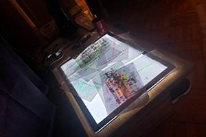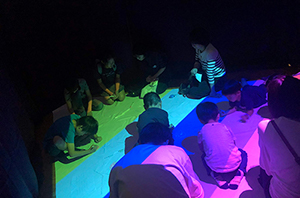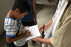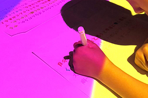 「ドクハク」にてなぞって頂いた邪念の多い写叫用紙を 無垢な子どもたちが裏面からなぞったり らくがきしたりして 浄化する。